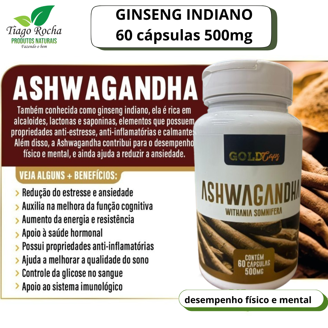 O ginseng indiano ajuda a reduzir os níveis de cortisol, o hormônio do estresse, promovendo uma sensação de calma e bem-estar.