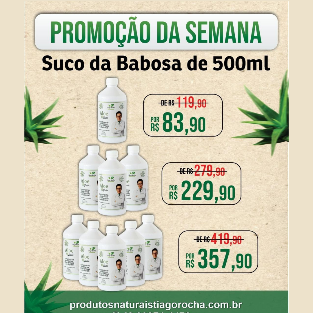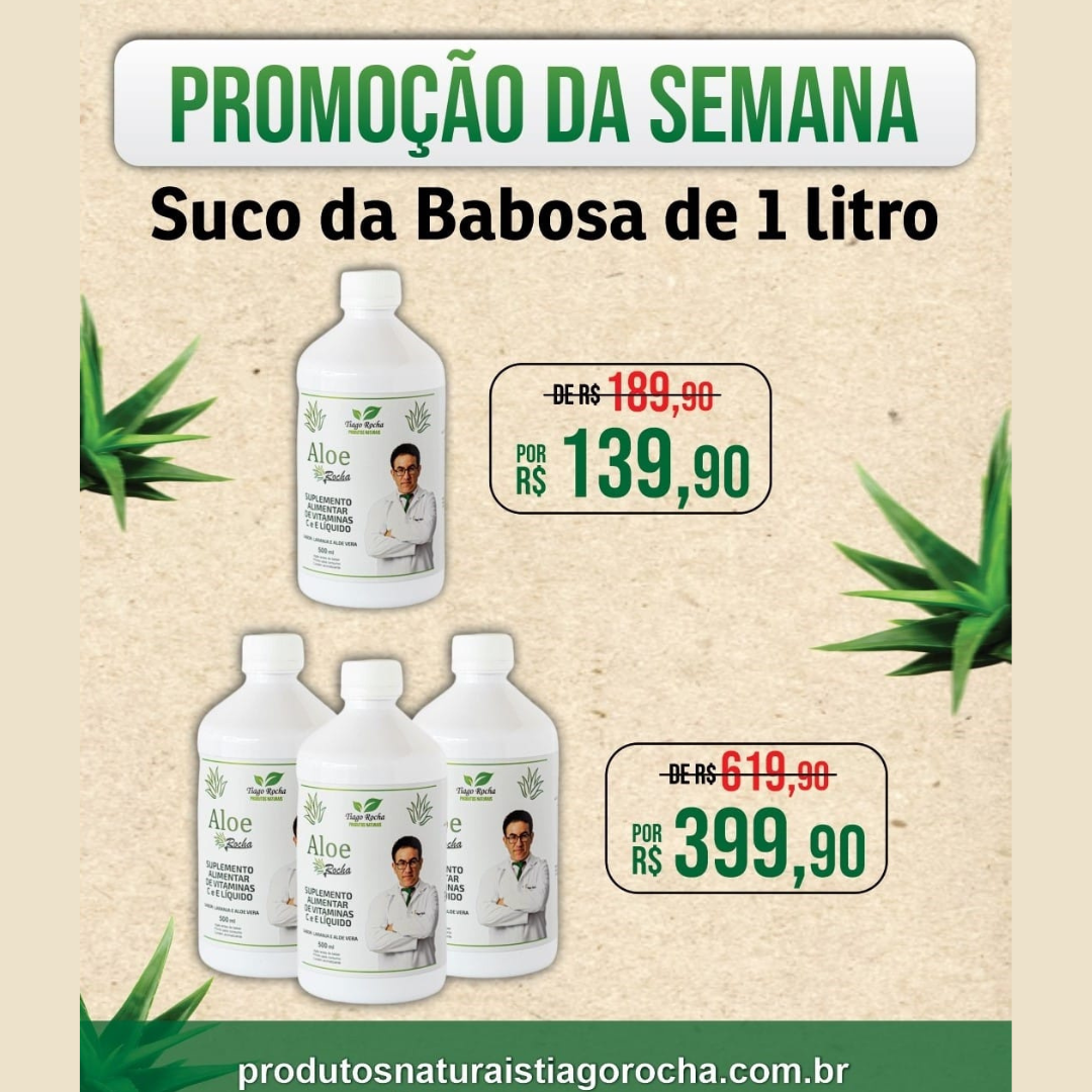 Kit promoção Suco Babosa Aloe Vera Tiago Rocha Leve 5 pague 4