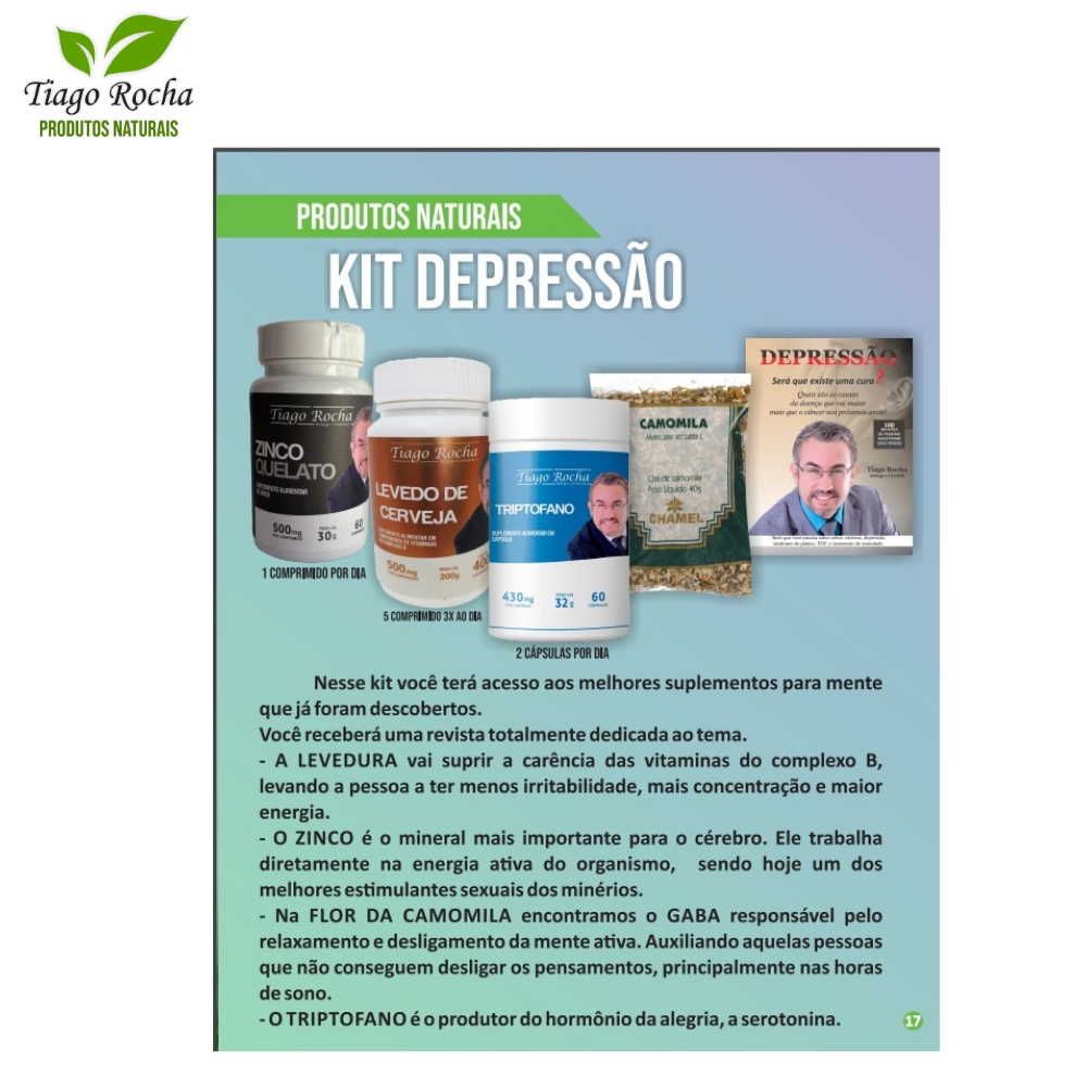 ✅DE BRINDE A REVISTA “DEPRESSÃO” TIAGO ROCHA COM MUITAS INFORMAÇÕES  A RESPEITO DESSA DOENÇA DO SÉCULO. AINDA CONTÉM TRATAMENTOS ADICIONAIS AOS SUPLEMENTOS, ONDE VC VERÁ QUE É POSSÍVEL SIM VENCER A DEPRESSÃO ATRAVÉS DOS TRATAMENTOS NATURAIS.