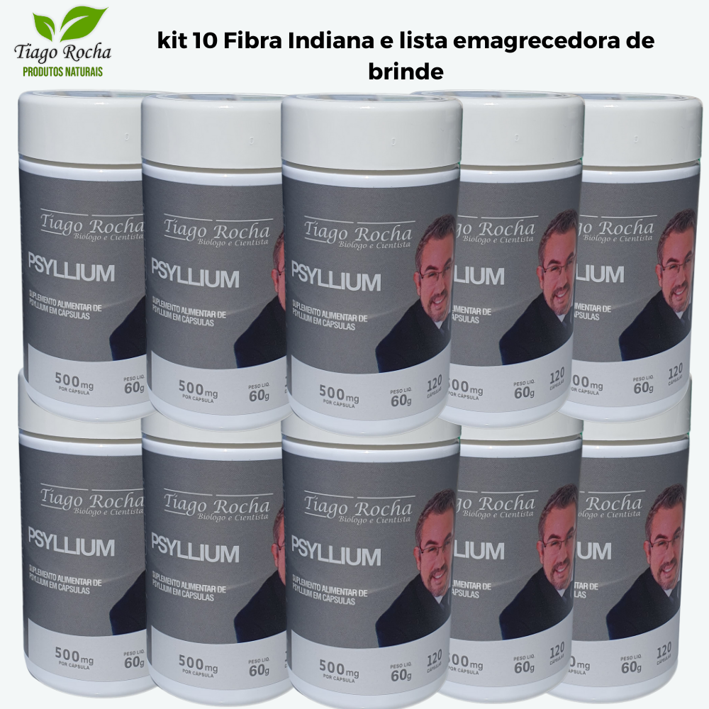 Kit10 potes Emagrecedor Psyllium Tiago Rocha 1200 cápsulas