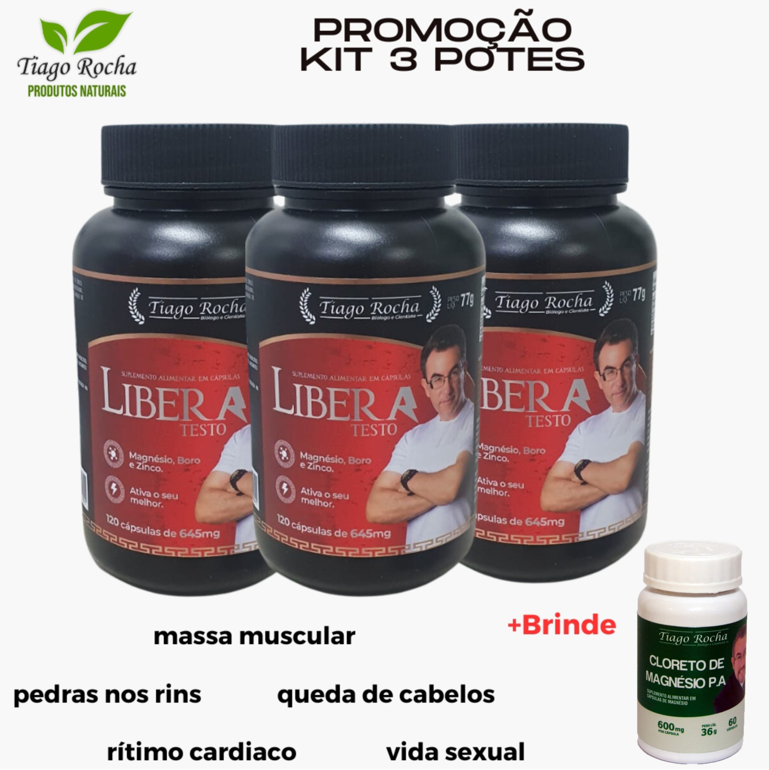 kit3 LIBERAtesto Tiago Rocha Libera a Testosterona brinde Cloreto de Magnésio