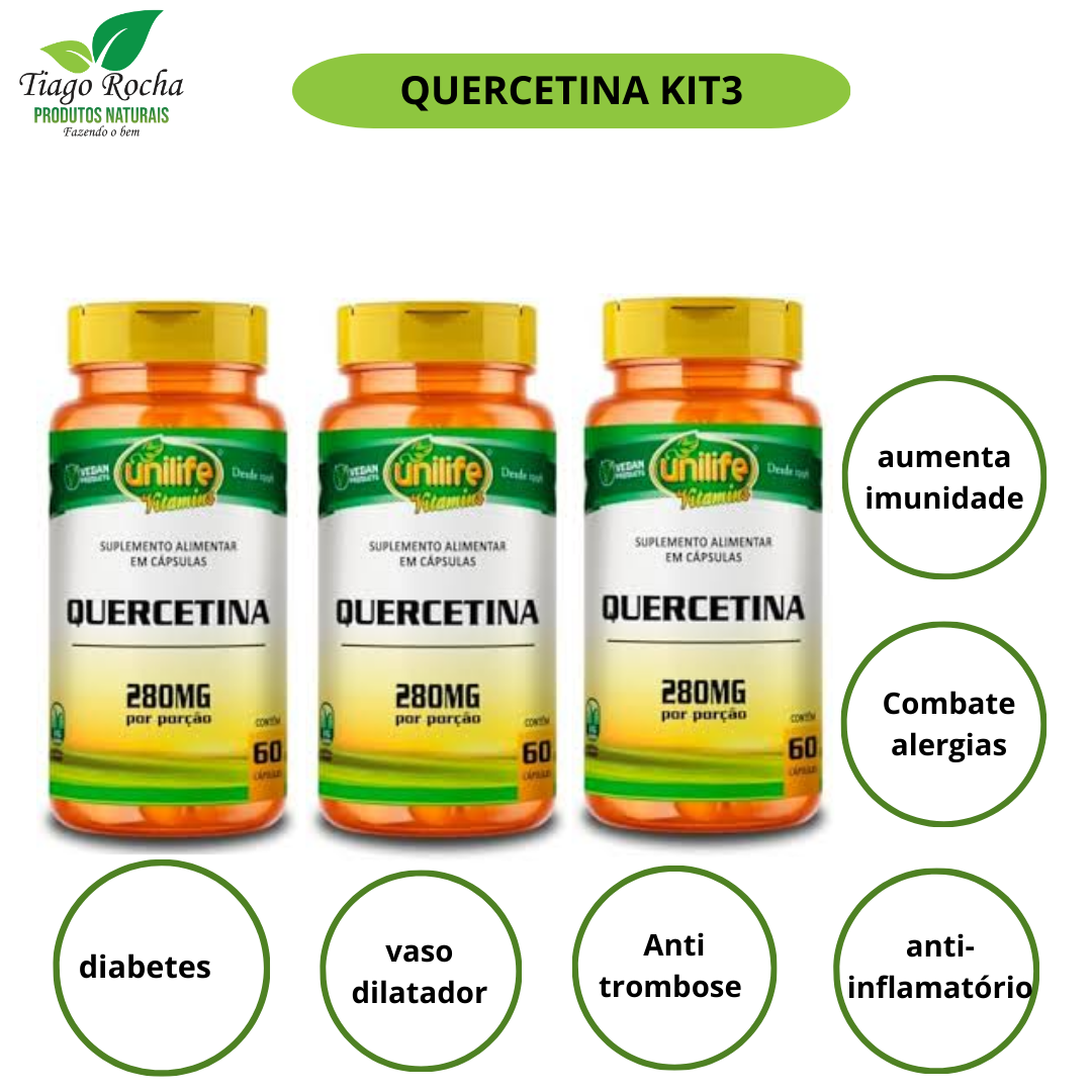 Quercetina é o flavonoide mais abundante na dieta humana, representando 95% dos flavonoides ingeridos. Apresenta propriedades anti-inflamatórias e anticarcinogênicas, atua no sistema imunológico e reduz a formação de cataratas nos diabéticos.