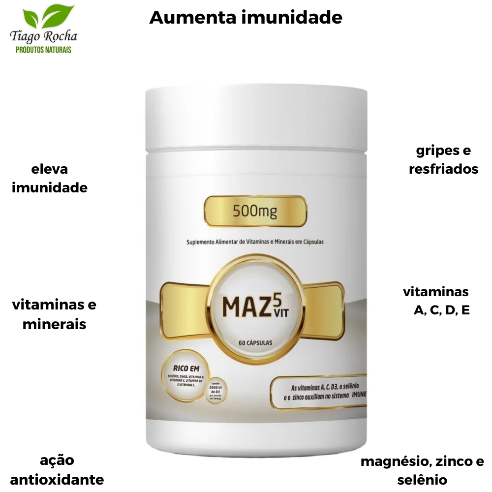 MAZ5vit, possui em  sua  formula o  essencial vitaminas e minerais que ajudam a aumentar a imunidade do nosso organismo:
