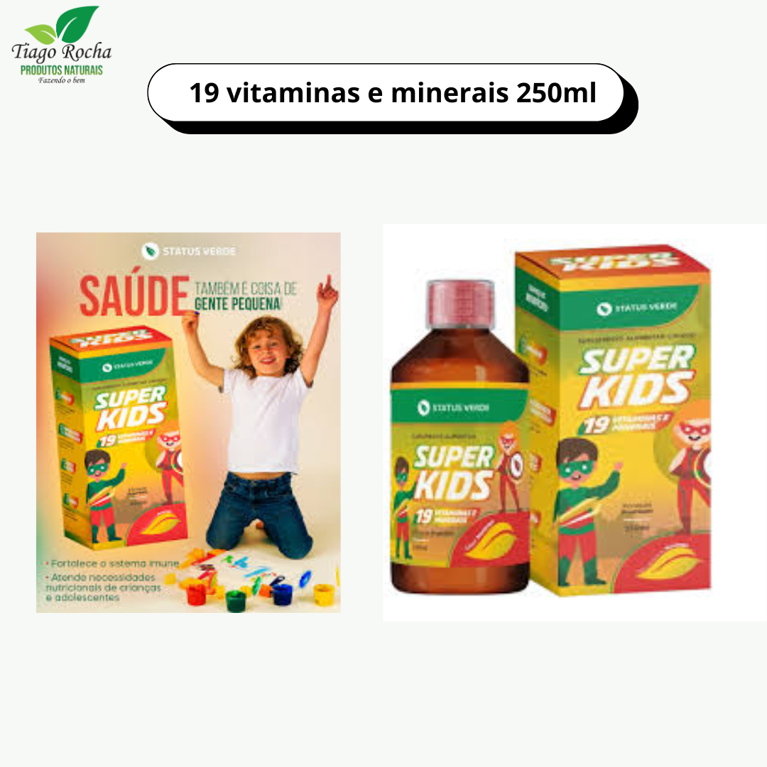 O Suplemento Super Kids 19 Vitaminas e Minerais 250 ml é a escolha ideal para garantir que as crianças recebam todos os nutrientes necessários para um crescimento saudável. Com o delicioso sabor de morango, essa fórmula da Status Verde torna a rotina de cuidados com a saúde mais agradável para os pequenos.