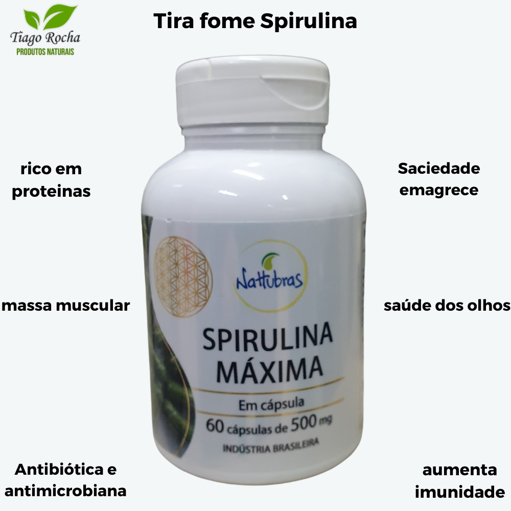 Tira fome Spirulina Máxima 60 Cápsulas 500mg